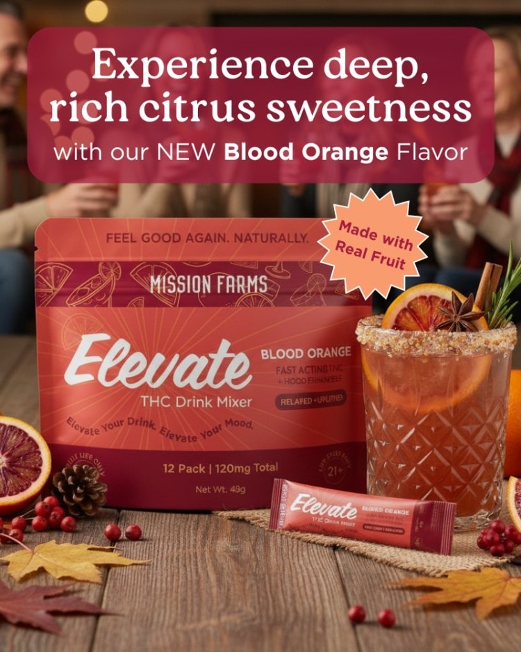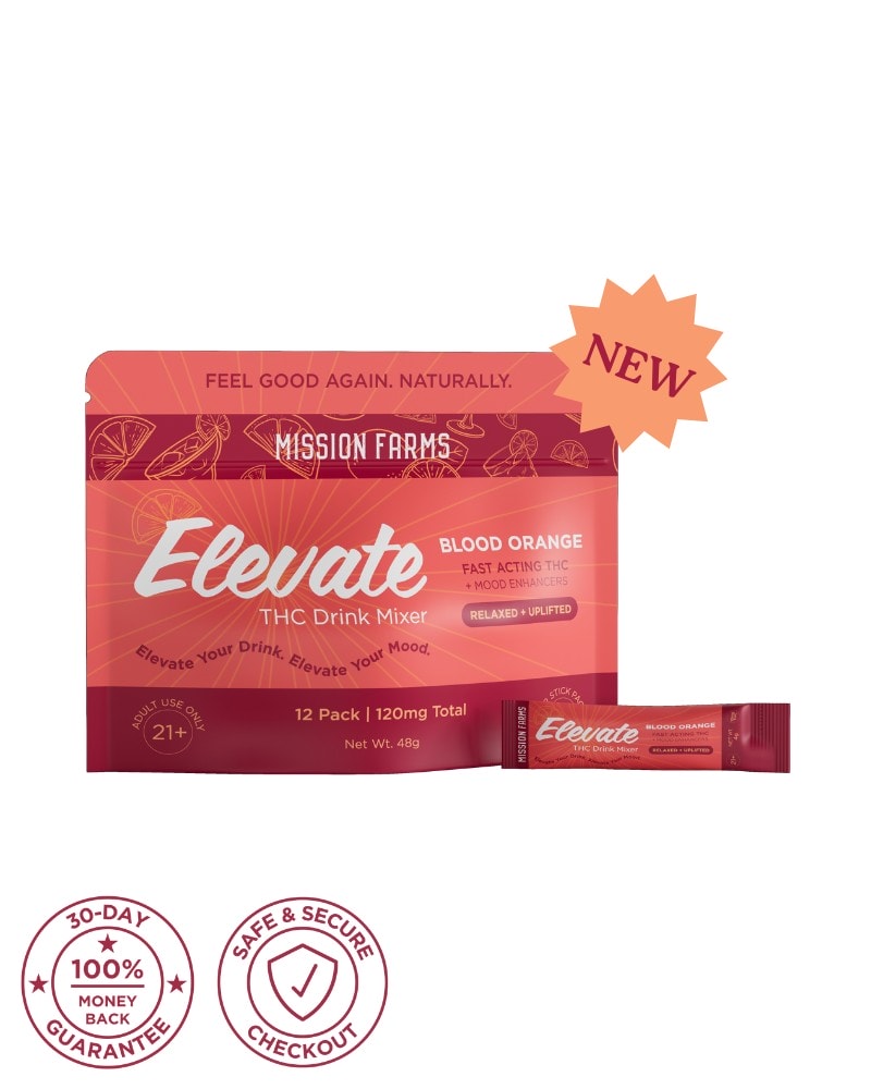 Elevate THC Drink Mixer turns every sip into a celebration! Choose between two delicious real fruit flavors—Fresh Lemon for bright, zesty citrus or Blood Orange for rich, citrus sweetness. Both deliver a light, feel-good buzz you can feel in 30 minutes or less. Just stir into sparkling water, iced tea, mocktails—even cocktails—and enjoy a refreshing, alcohol-free high. Ready to feel amazing? Choose your flavor and strength below
